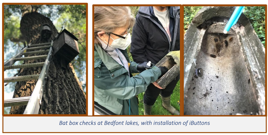 LBG used funds from members’ fees and donations to purchase 18 ibutton dataloggers in January 2024. These dataloggers were placed inside bat boxes at Bedfont lakes (just south of Heathrow), where Patty and Brian Briggs have been monitoring bat boxes for well over a decade, with very good occupancy by Nathusius’ pipistrelles.